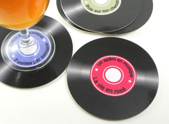 Set 6 Round Glass Underside Vinyl Disc 45 T A Music Aperitif Etsy