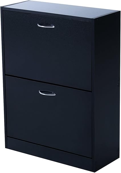 Homcom Meuble A Chaussures Double Compartiment A Bascule 60l X 24l X 80h Cm Panneaux De Particules Noir Amazon Fr Cuisine Maison
