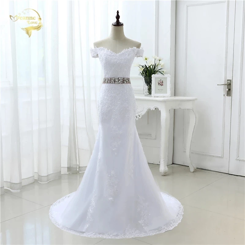 Blanc Ivoire Luxe Robe De Mariee Longo Vestido De Noiva Robe De Mariage Dentelle Ceinture Perlee Sirene Casquette Manches Robes De Mariee Aliexpress