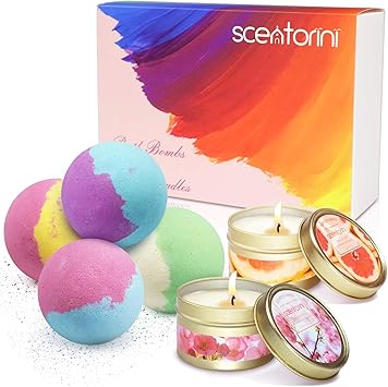 Scentorini Coffret Bombes De Bain Boules Effervescentes Et Bougies Parfumees Riches En Huile Essentielle Idee Cadeau Parfaite Pour Bain Moussant Pour Femme Filles Enfants Ou Pour Se Faire Plaisir Amazon Fr Beaute Et