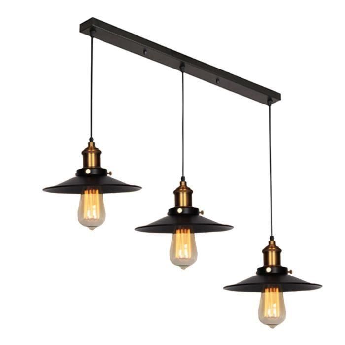 Idegu 3 Lampes Suspension Luminaire Industrielle Lustre Plafonniers Design Edison Metal Lustre Suspension Avec 50cm Support En Barre O 22cm Noir Amazon Fr Luminaires Et Eclairage