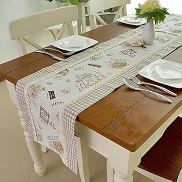 Chemin De Table Coton Lin Melange Style Maison De Campagne Amazon Fr Cuisine Maison