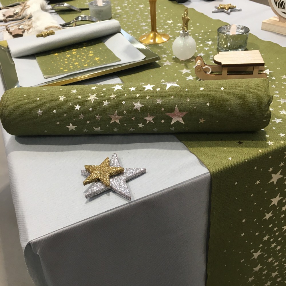Chemin De Table Coton 28cmx5m Milieu Etoile Kaki
