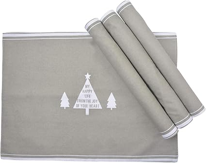 Kinhwa Lot De 4 Sets De Table Sets De Table 100 Coton Sets De Table Design Elegant Sapin De Noel Parfait Pour Les Diners Fetes Pique Niques Gris Clair