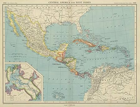 Amazon Com Caribbean Central America Inset Panama Canal Zone Bartholomew 1947 Old Map Antique Map Vintage Map Printed Maps Of Caribbean Posters Prints