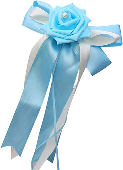 Kentop Decoration De Voiture De Mariage Avec Nœud Rose Pour Retroviseur Poignee De Porte Satin Bleu 35 17cm Amazon Fr Cuisine Maison