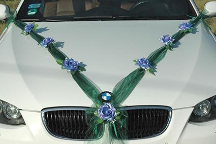 Autoschmuck Organza M Decoration De Voiture Pour Mariage Composee De Ruban Organza Et Roses Bleu Grun Amazon Fr Cuisine Maison