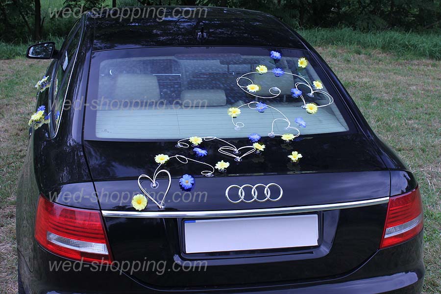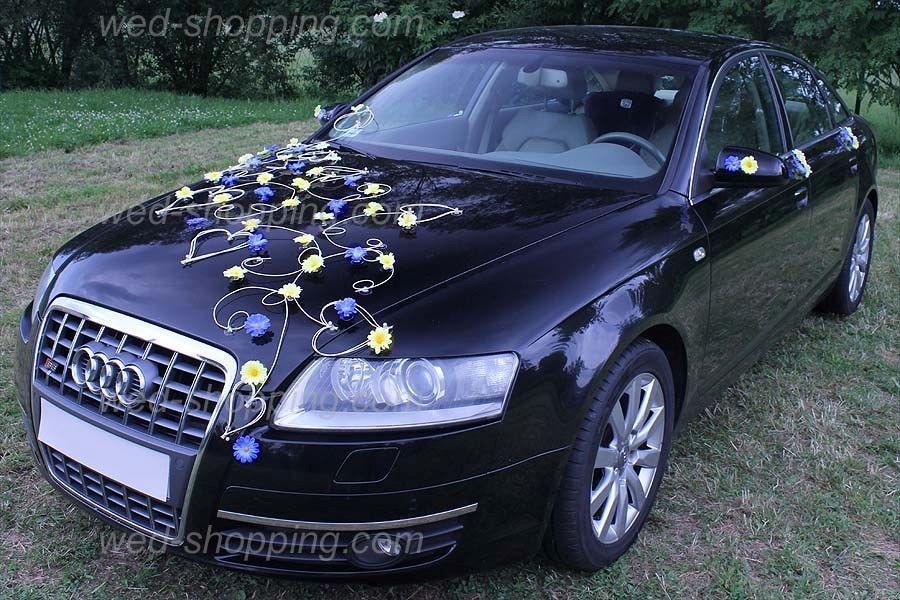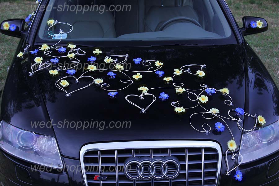 Decoration Voiture Mariage Marguerites Jaune Bleu