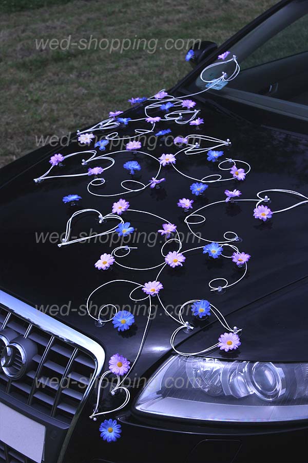 Decoration Voiture Mariage Marguerites Violett Bleu