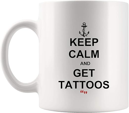 Amazon Com Keep Calm Get Tattoos Coffee Mug Funny Mugs Coworker Office Cup Work Gifts Sarcasm Beer Cup Sarcastic Quotes Mugs Meme Humor Man Woman Kids Gift Fun Sayings Kitchen Dining