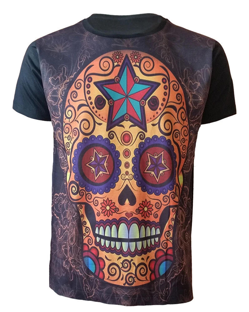 Tete De Mort Calavera T Shirt Tatouage Rock Metal Jour Mexicain Crane T Shirts Aliexpress