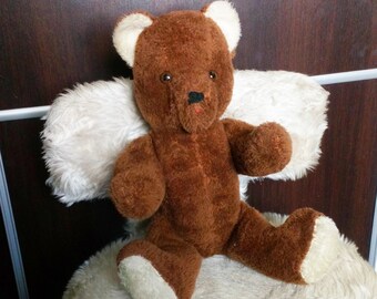 Vintage Ancien Doudou Peluche Ours Marron Beige Brun Ajena 45 Cm
