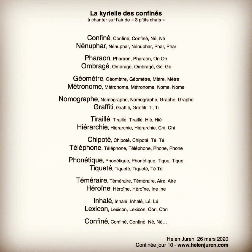 Helen Juren La Kyrielle Des Confines A Chanter Sur L Air De 3 P Tits Chats Kyrielle Untexteparjour Confines Challenge Poem Poeme Poesiefrancaise Poesie Helenjurenauteure Helenjuren Poesieduconfinement T Co Sixnaor3gc