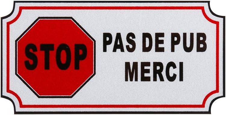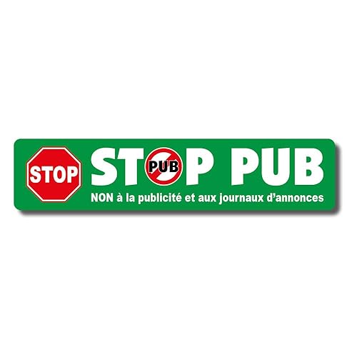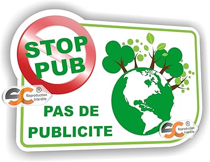 Il existe une parade simple apposer sur sa boîte un "Stop Pub" énergique, bricolé maison ou en version autocollant illustré D'après une enquête de l'association de consommateurs UFCQue. Cela marche plutôt bien Mais pas toujours À Strasbourg, l'association Zéro Waste, qui lutte con. Vinyle Adhésif imprimé qualité HQ, tenue en extérieur 47 ans Dimensions Environ 80 x 40 mm.