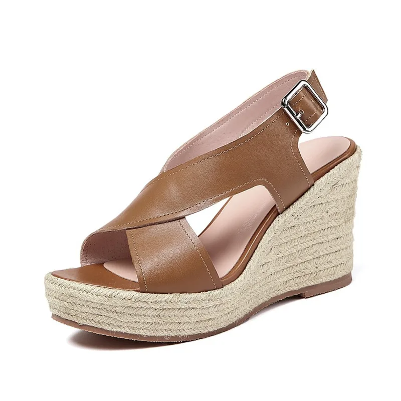 Sandales Femme Cuir Veritable Semelle Epaisse Muffin Talons Hauts Compensees Plateforme Femme Sandales Talon Muffin Chaussures Pour Femmes Aliexpress