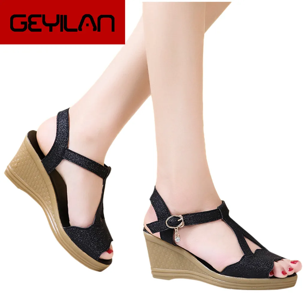 Acheter Talons Compenses Sandales Plateforme Talons Chaussures Femmes Paillettes Boucle Bling Ete Zapatos Mujer Pantoufles Femme Sandale De 30 24 Du Tianjinbusiness Dhgate Com