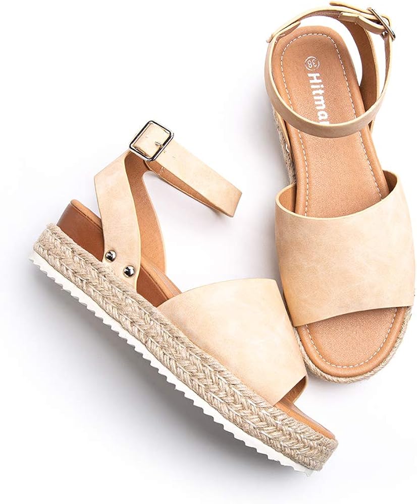 Sandale Femme Compensees Espadrilles Ete Cuir Plateforme Bout Ouvert 5 Cm Talon Chaussure Plates Plage Confort Boucle Kaki 37 Amazon Fr Chaussures Et Sacs