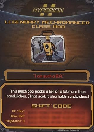 Amazon Com Borderlands 2 Legendary Mechromancer Class Mod Dlc Card Shift Codes Pack No Game For Xbox 360 Ps3 Pc Mac Video Games