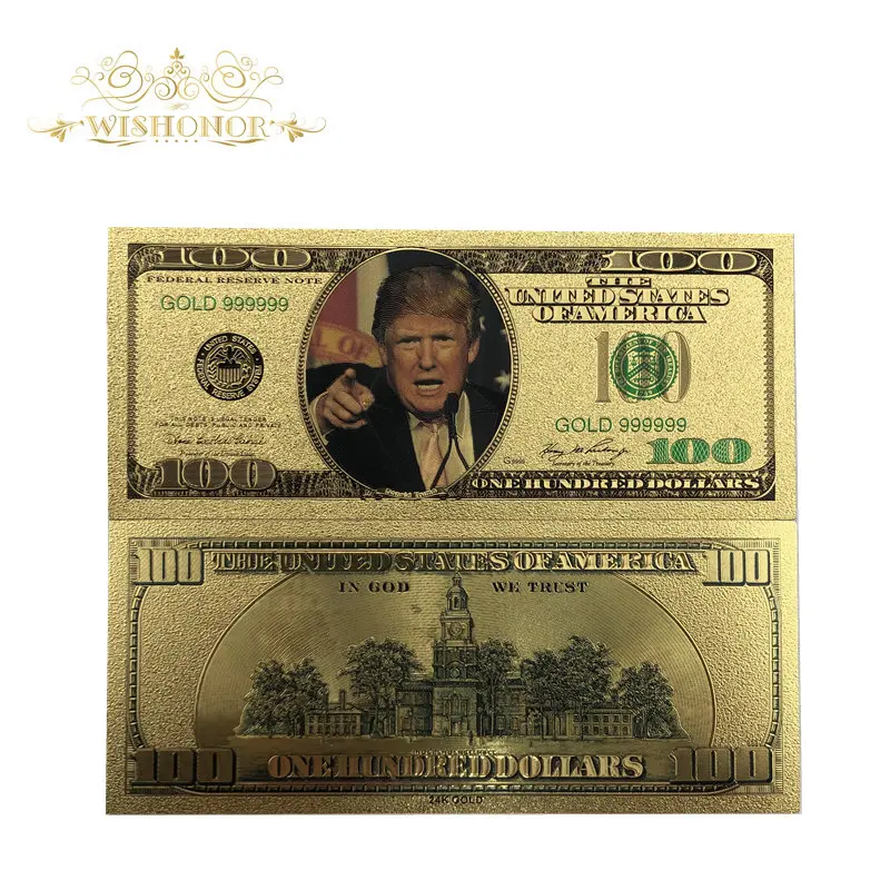 10pcs Lot Colorful Year Usa Trump Banknotes 100 Dollar Bills Banknote In 24k Gold Plated Paper Money For Gifts Gold Banknotes Aliexpress