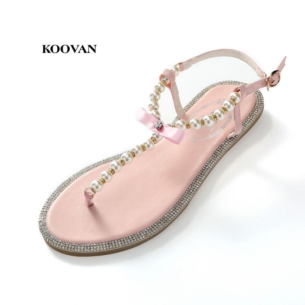 Acheter Koovan Sandales Pour Femmes 19 Chaussures De Mode Dete Fille Arc Diamant Perle Sandales Pour Femmes Sandales Sandales Plates Boucle De La Cheville Larger Size 33 43 De 29 6 Du Xinjiamei Dhgate Com