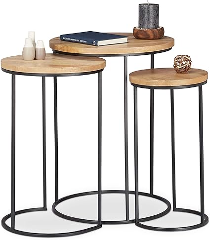 Relaxdays Nature Basse Lot D Appoint Rondes Table De Chevet 3 Tailles En Metal Et Bois De Manguier Fer 3 Amazon Fr Cuisine Maison