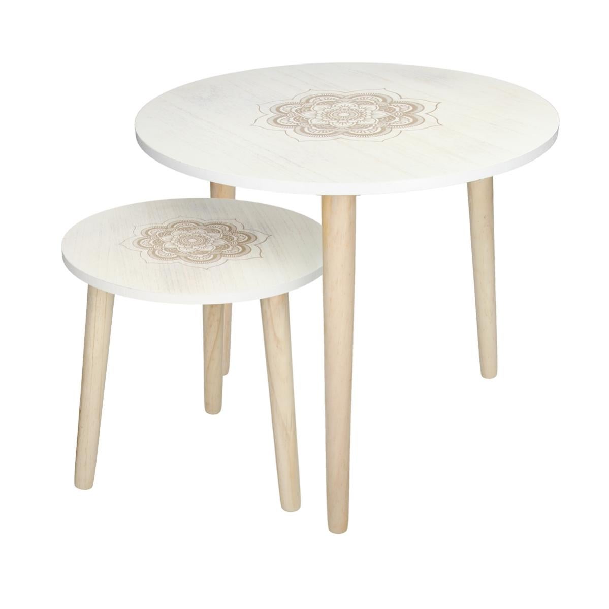 Table D Appoint Ronde Lot De 2 En Bois Blanc Table Gigogne Nordique Scandinave Blanc Nature