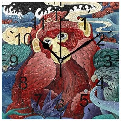 Cl353ll Horloge Murale Carree En Bois Singe Chinois Singe Signe Du Zodiaque Chinois Rouge Amazon Fr Cuisine Maison