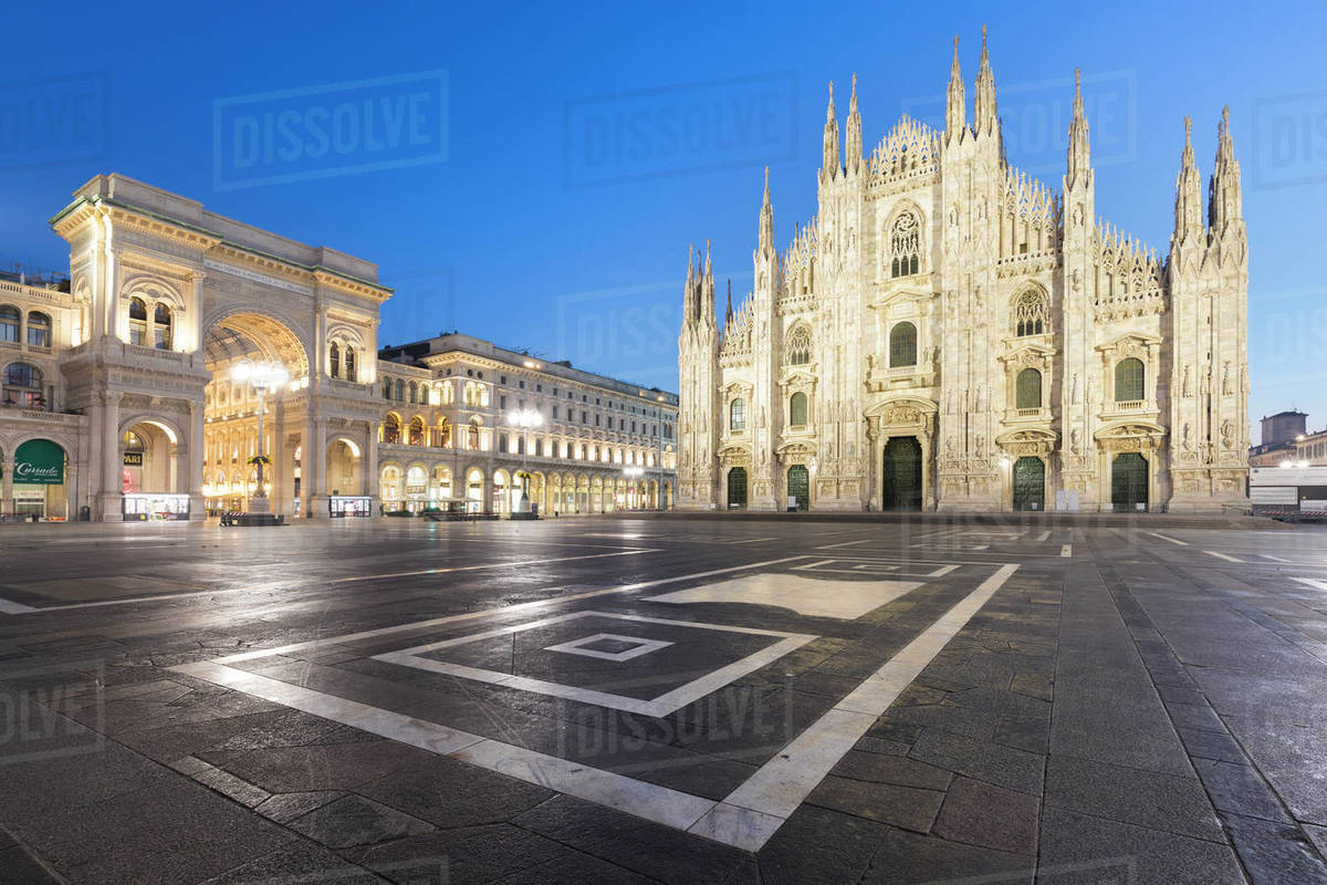 Milan Cathedral Duomo And Galleria Vittorio Emanuele Ii At Dusk Milan Lombardy Italy Europe Stock Photo Dissolve