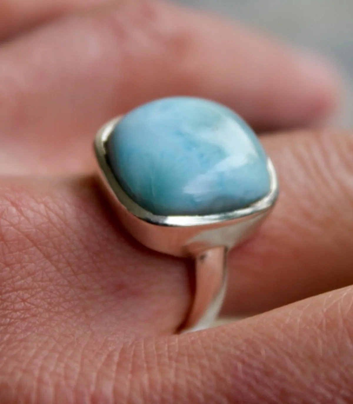 Bijoux Ethnique Bague Argent Pierre Naturellle Larimar A Caen Shantilight