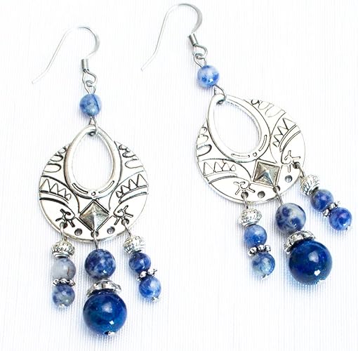 Kimaya Bijoux Boucles D Oreilles Artisanales En Pierre Naturelle Lapis Lazuli Et Sodalite Amazon Fr Bijoux