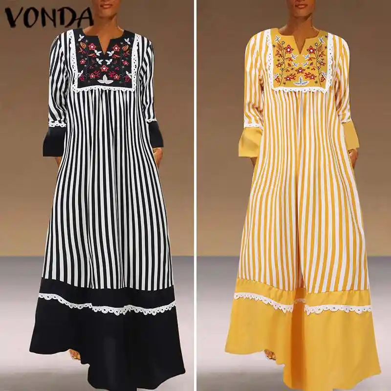 Vonda Longue Robe Maxi Femme Vintage Imprime Robes De Soiree Automne Robe Grande Taille Boheme Vestidos S 5xl Plage Robe De Soleil Femme Aliexpress