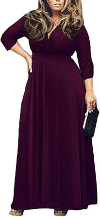 Bigood Robe Grande Taille Femme Col V Manches 3 4 Robes De Plage Longue Voyage Casual Mode Amazon Fr Vetements Et Accessoires