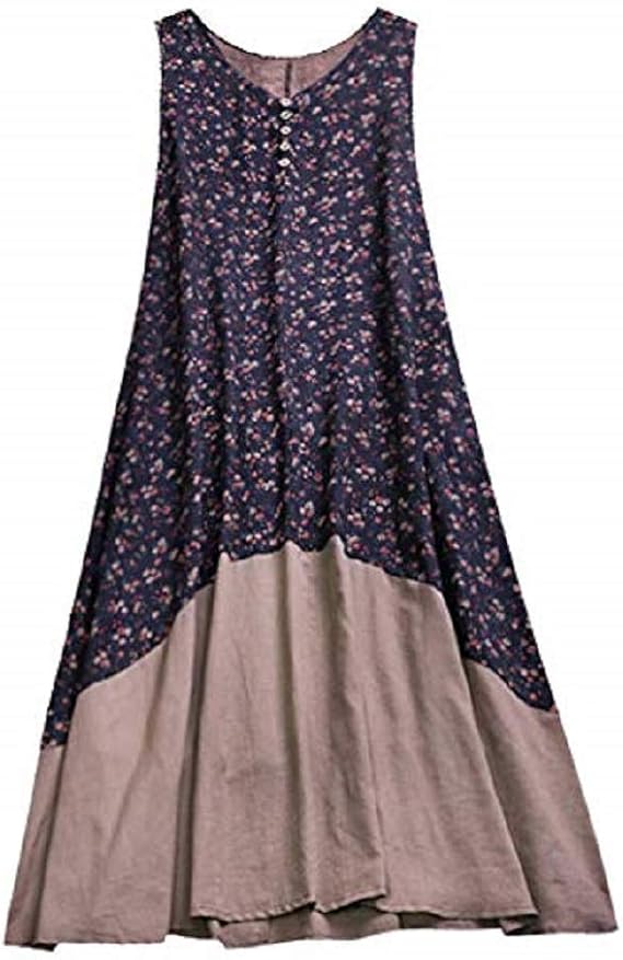 Boho Longue Robe Grande Taille Femmes Cotton Linen Sans Manches A Line Rakuten