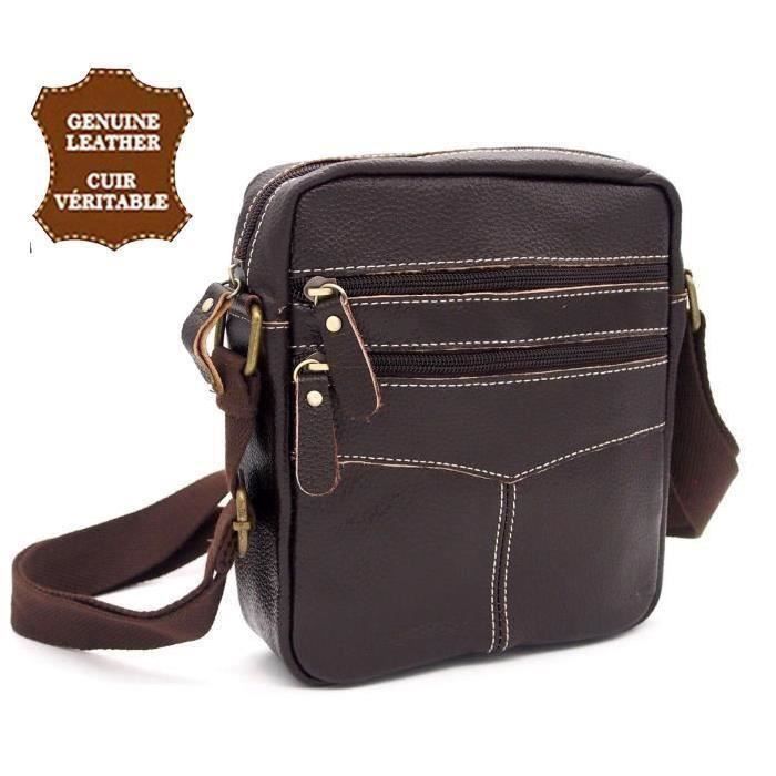 Sac Sacoche Bandouliere Homme Cuir Veritable Marron Achat Vente Sacoche Soldes Sur Cdiscount Des Le Janvier Cdiscount