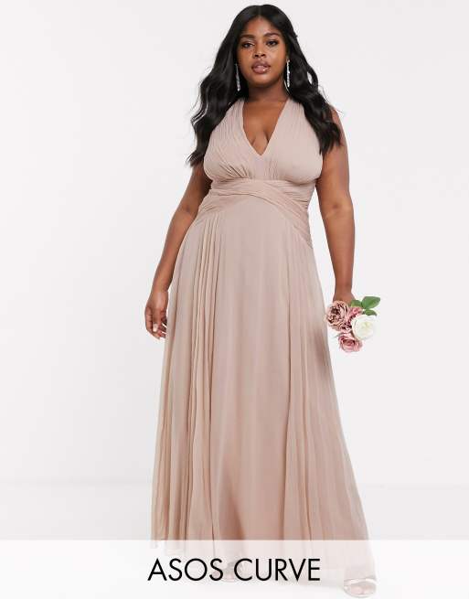 Asos Design Curve Robe Longue Drapee Avec Corsage Fronce Et Taille Croisee Pour Demoiselle D Honneur Asos