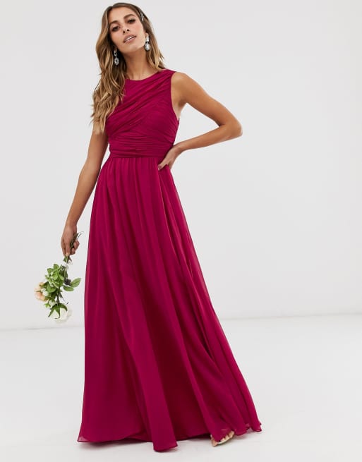 Asos Design Robe Longue De Demoiselle D Honneur Avec Corsage Plisse Au Fini Doux Asos
