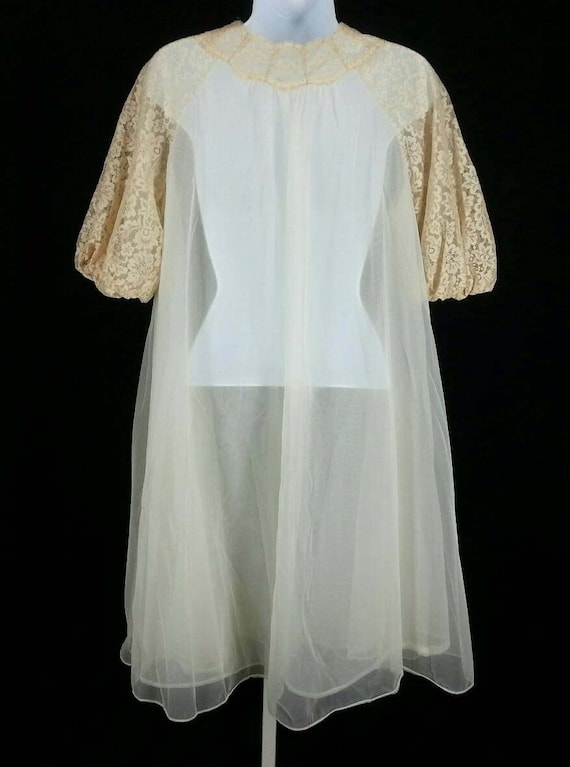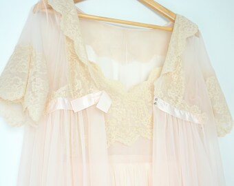 Vintage 50s Chiffon Lace Robe Beige Peignoir Lounging Shorty Etsy