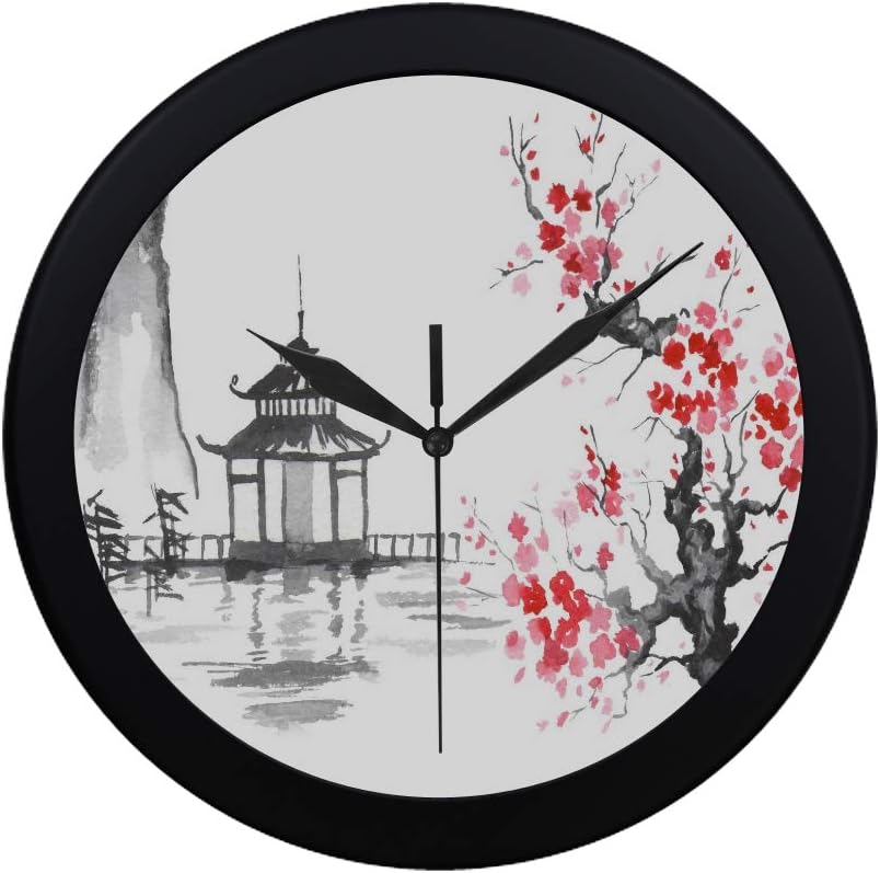 Amazon Com Modern Simple Japan Traditional Japanese Painting Sumi E Art Sak Pattern Wall Clock Indoor Non Ticking Silent Quartz Quiet Sweep Movement Wall Clcok For Office Bathroom Livingroom Decorative 9 65 Inch Home Kitchen