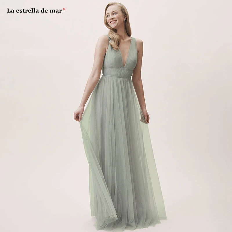Robe De Demoiselle D Honneur En Tulle Sexy Col En V Robe D Invitee De Mariage Style Boheme Coupe A Line Longue Au Sol Nouvelle Collection Aliexpress