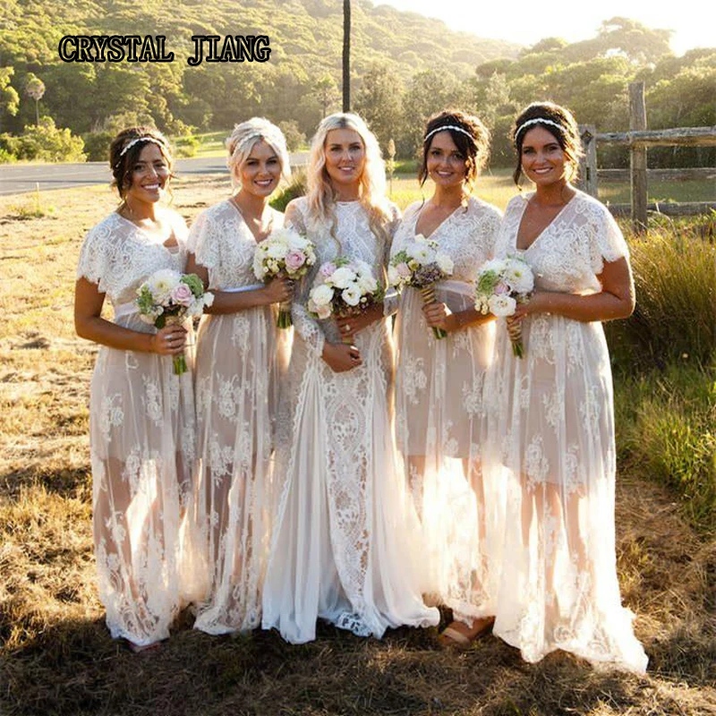 Robes De Demoiselle D Honneur En Dentelle Style Bohemien Col En V Taille Haute Ivoire Et Champagne Grande Taille Aliexpress