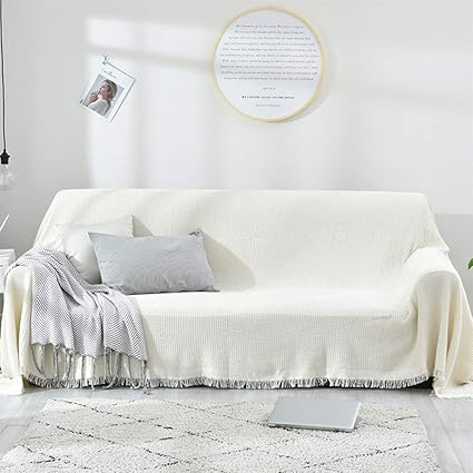 Raylans Jete De Canape Jacquard Tricote Jete De Lit Couverture De Fauteuil Decorative Housse De Canape Antiderapage Blanc Amazon Fr Cuisine Maison
