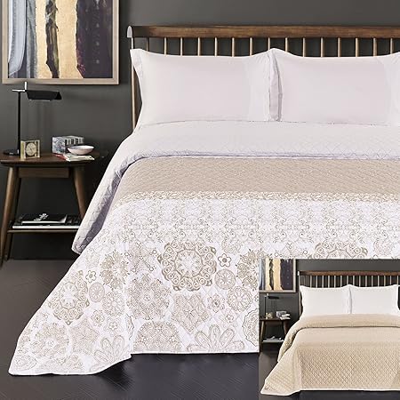 Decoking Couvre Lit 170 X 210 Cm Beige Blanc Cappuccino Jete De Lit Avec Imprime Abstrait Double Face Facile D Entretien Alhambra Amazon Fr Cuisine Maison