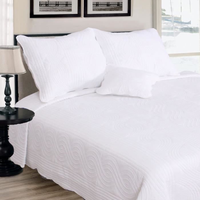Couvre Lit Boutis Blanc Piquage Vagues 3 Pieces Pour Lit 2 Places Achat Vente Jetee De Lit Boutis Soldes Sur Cdiscount Des Le Janvier Cdiscount
