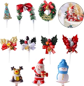 Tomkity 10pcs Deco Gateau Noel Topper Gateaux Buche Mignon Fournitures Pour Decoration Ornement Gateaux Cupcake 10 Modeles Diy Baby Shower Anniversaire Noel Patisserie Accessoires De Decoration