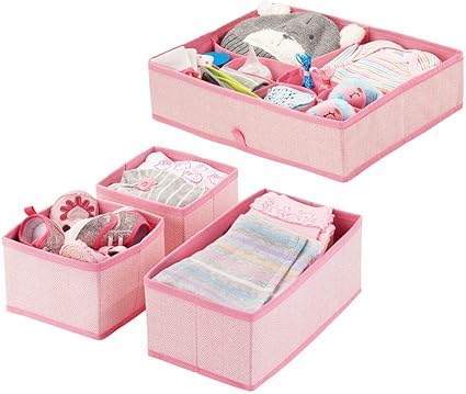 Mdesign Boite De Rangement Pour Chambre D Enfant En Polypropylene Lot De 4 Bac De Rangement Pour Accessoires De Bebe Aussi Comme Organiseur De Tiroir Armoire Table A Langer Rose