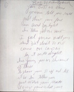 Popsike Com Michael Jackson Bad Hand Written Lyrics Mega Rare Auction Details