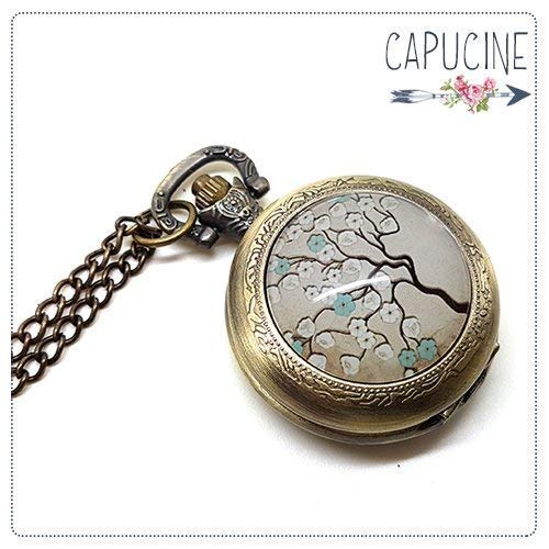 Montre Gousset Bronze Cabochon Verre Arbre Fleurs Et Libellule Montre A Gousset Papier Arbre En Fleurs