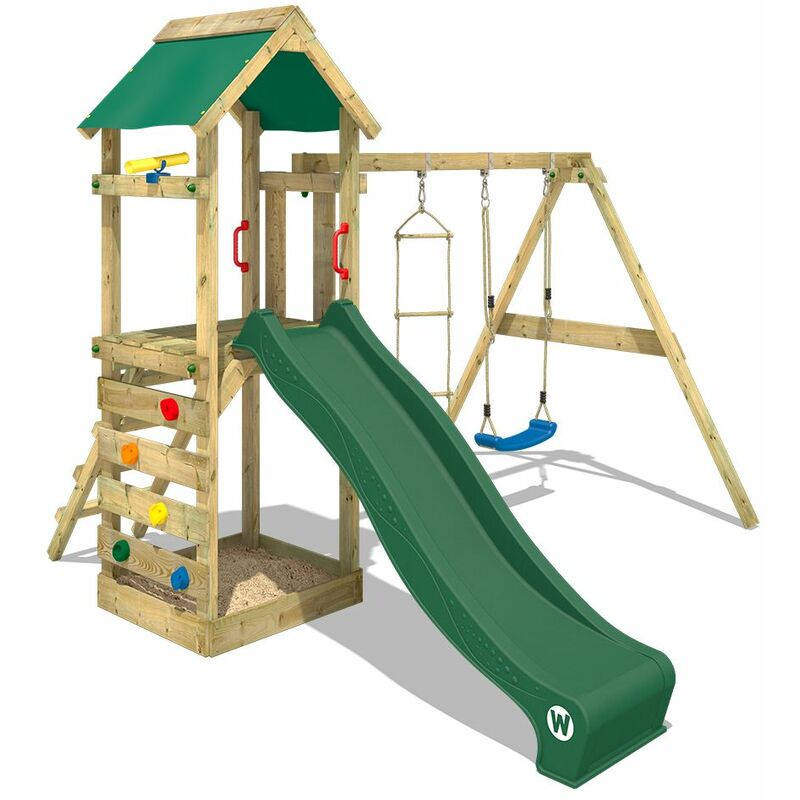 Aire De Jeux Portique Bois Freeflyer Avec Balancoire Et Toboggan Vert Maison Enfant Exterieur Avec Bac A Sable Echelle D Escalade Accessoires De Jeux Wickey Comparer Les Prix De Aire De