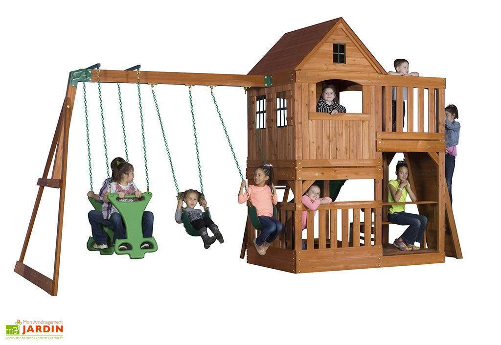 Aire de jeux pour enfants Une marque créée a il a y a plus de 100 ans Une marque dédiée depuis de très nombreuses années aux jeux de pleinair pour enfants. Maisonnette pour les jeux des enfants en palettes, meubles de jardin en palettes, espace pour s'amuser, bois non peint, cour recouverte de dalles en mousse, espace sécurisé Cabane enfant modèles pour le jardin. Le bois étant notre produit de prédilection, il est indispensable pour nous de vous proposer des jeux d'extérieur pour enfant construits dans ce matériau à la fois élégant et robuste Toutes les maisonnettes, balançoires et aires de jeux sont en bois brut imputrescible Les structures sont en bois de cèdre tropical.