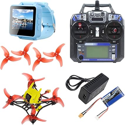 Amazon Com Qwinout T100 Diy Indoor Fpv Racing Drone Kit 2 5 Inch 100mm Wheelbase Full Set With Fpv Watch Flysky Remote Controller Rtf Version Yellow Toys Games
